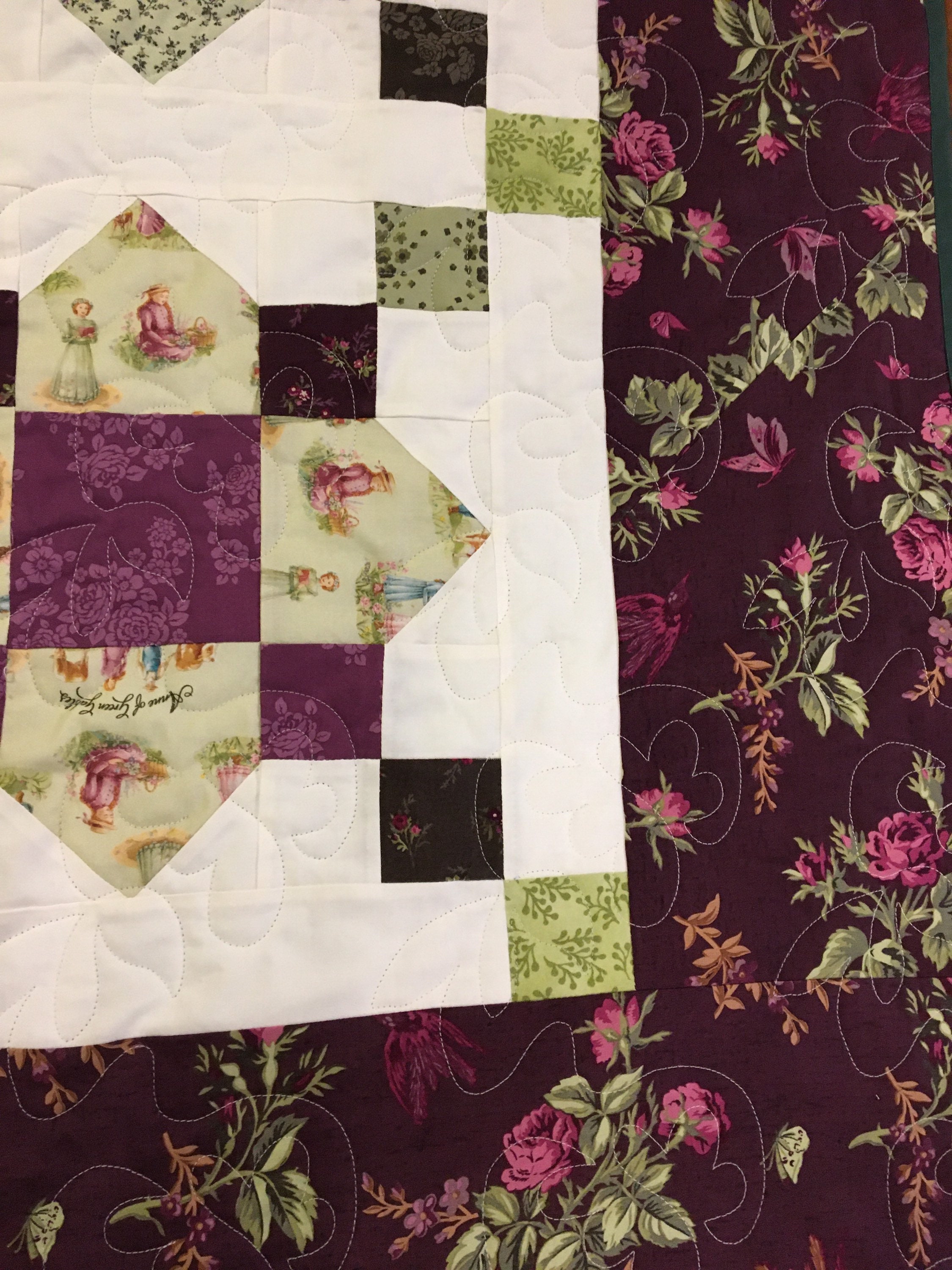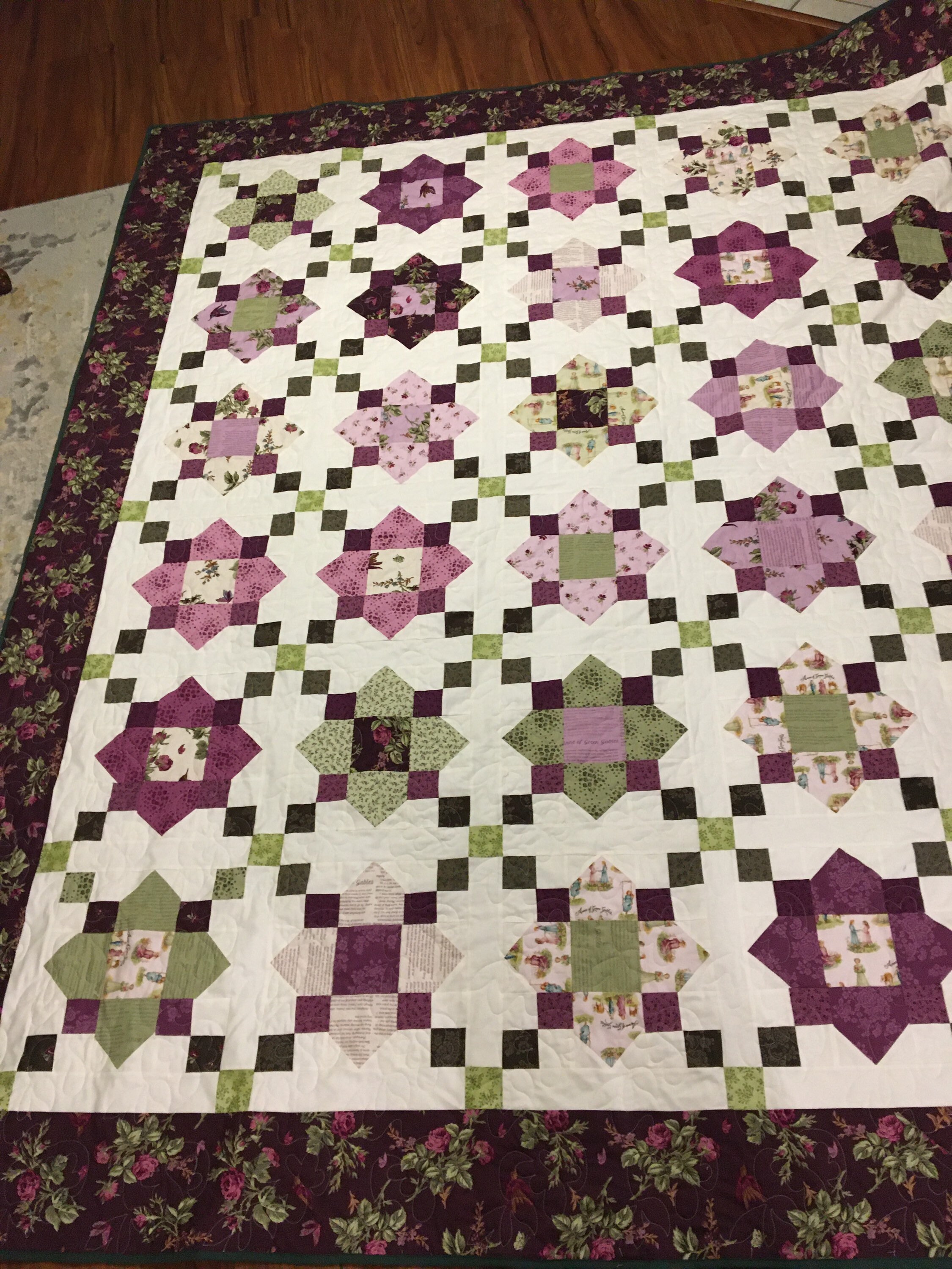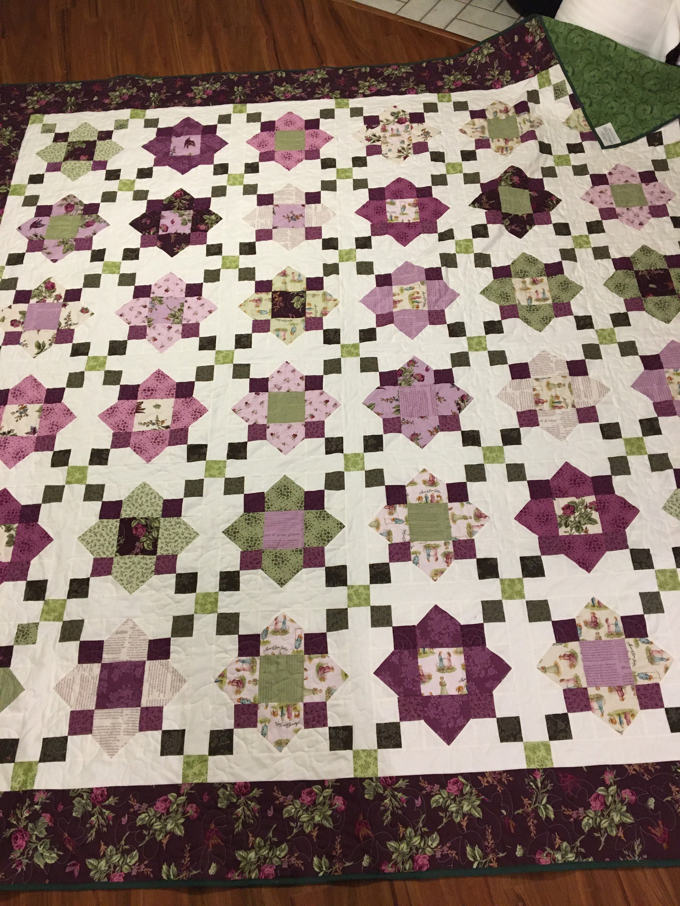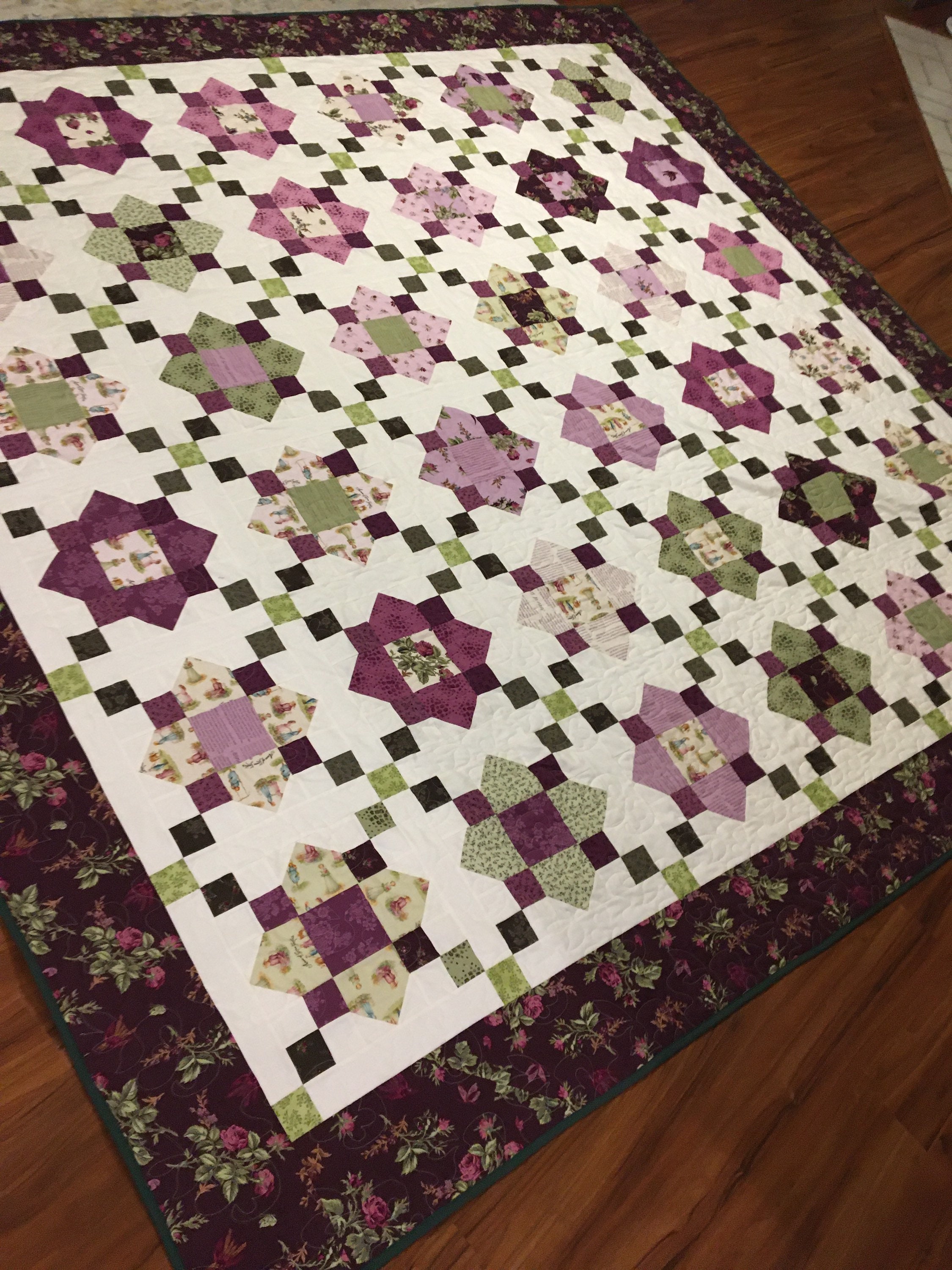 What a special quilt for that right person! This uses the Anne of Green Gables fabric line and the Quadrafoil quilt block.