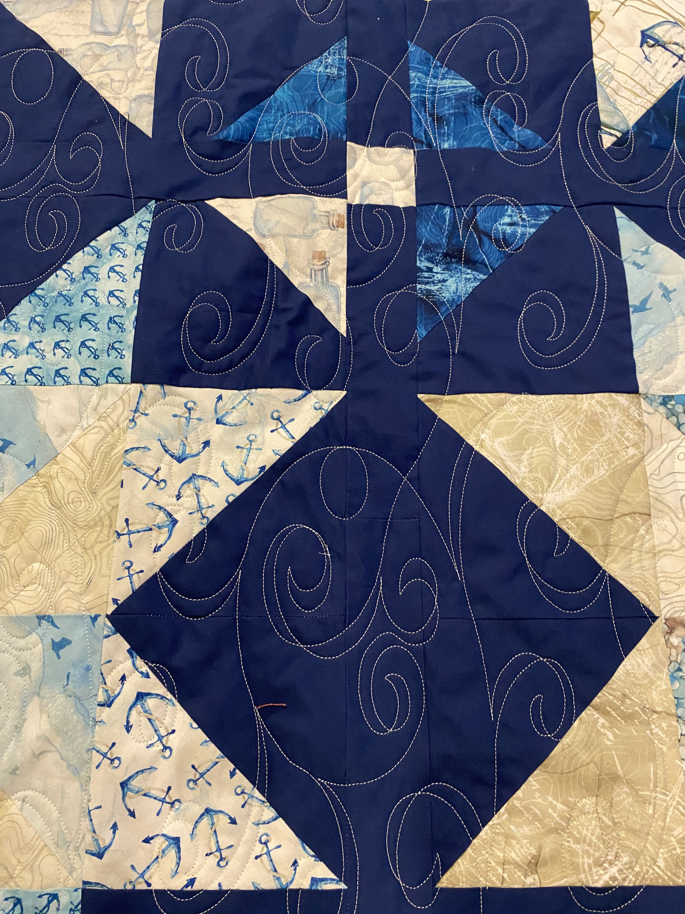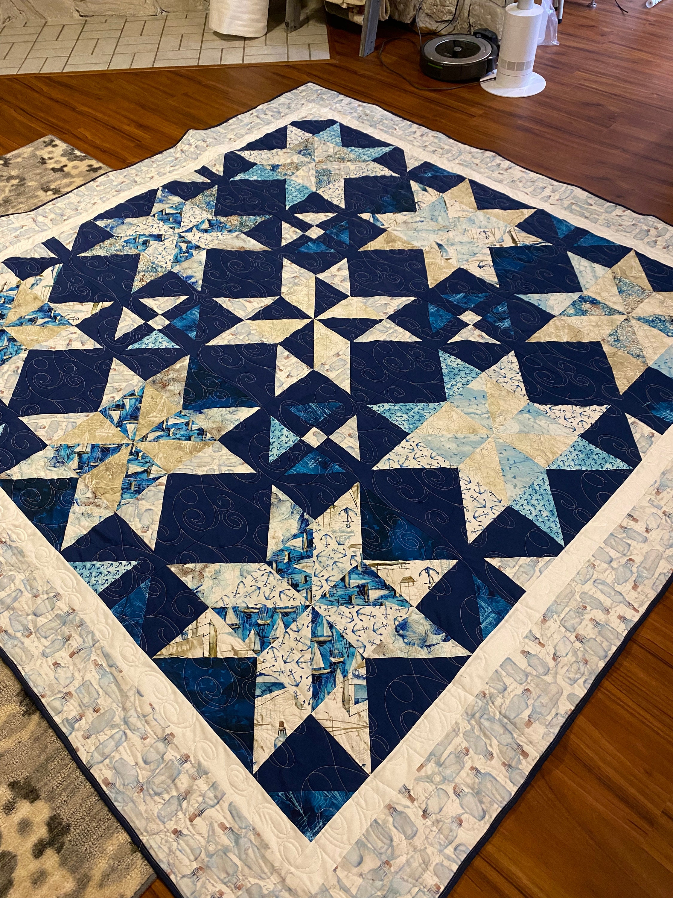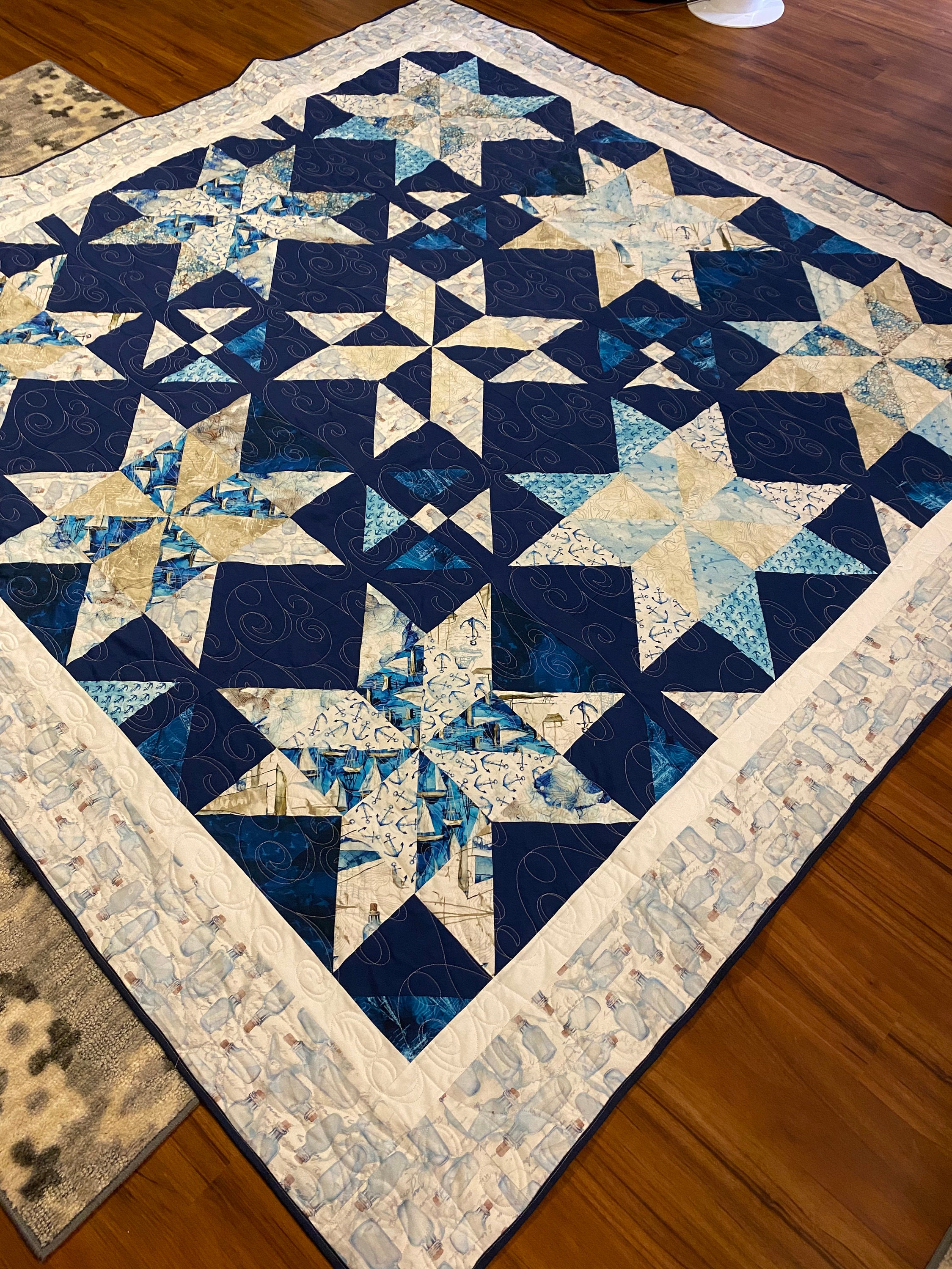 Come sail away with this nautical themed quilt I call message In A bottle. Reminds me of a good movie from the past.